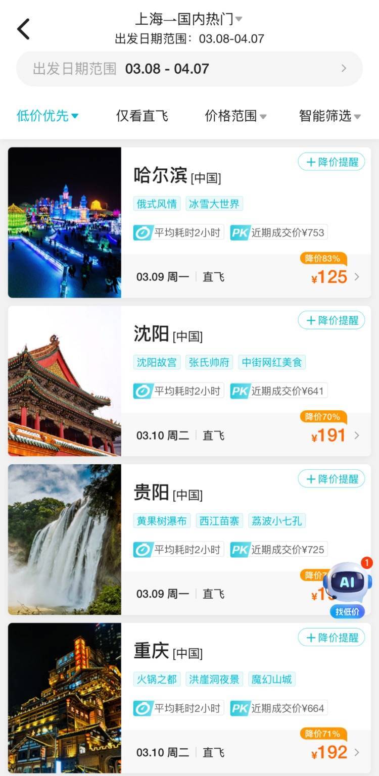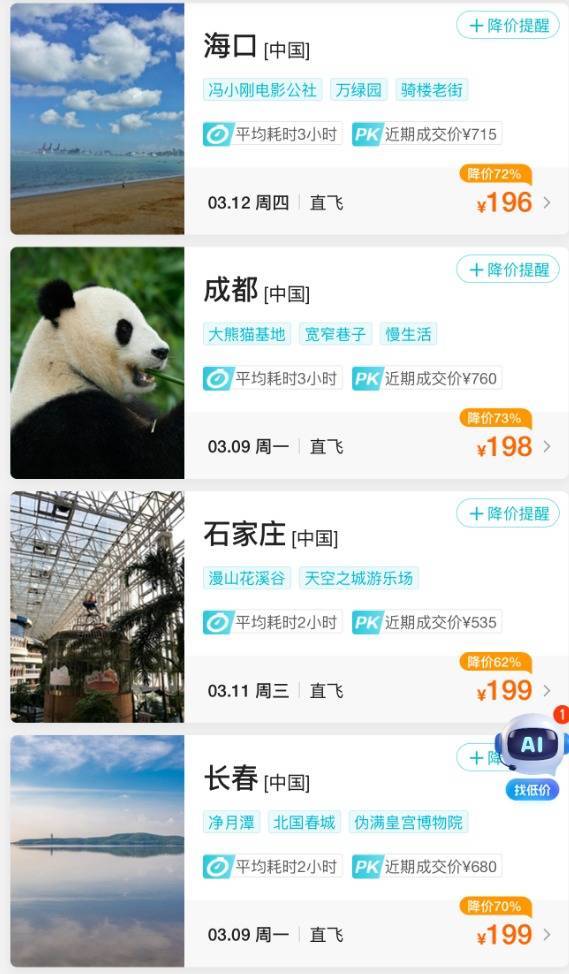 等多地的机票价钱也均有所着落!