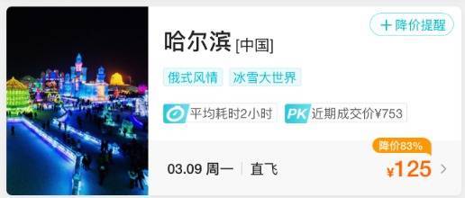 上海启程直飞哈尔滨的机票