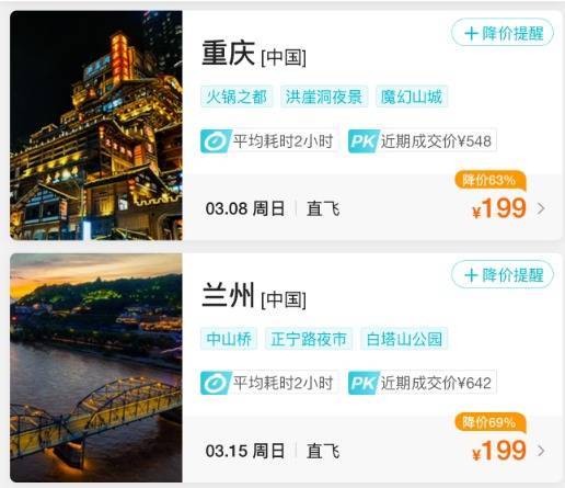 重庆、兰州等地的机票
