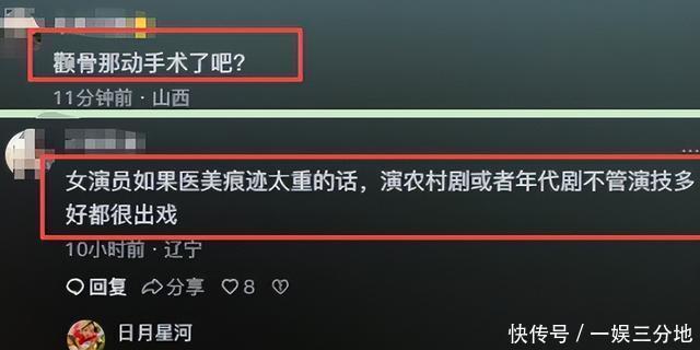 在崔国明的姐姐崔小红登场时, 不雅众一边感叹她身世宝贵, 还没成婚肚子大了、对象又进去了, 一边又皱起眉头,直言她那张脸太奇怪。 她留着一头中等进度的鬈发,脸上化着自如的妆容, 但依旧遮不住两颊的肿胀,皮肤又光滑油亮, 仿佛跟其他东谈主不是一个年代的。 而饰演她的演员张歆艺,她的鼻梁、嘴巴、下巴,便是哪哪皆不精深, 一看便是医好意思的踪影。