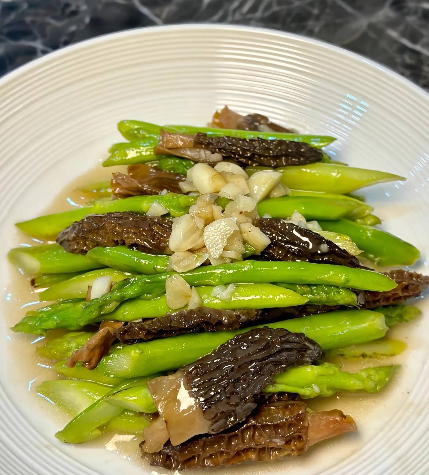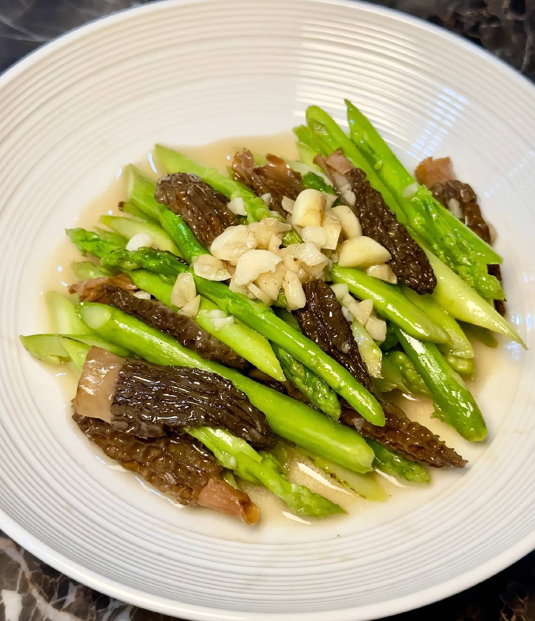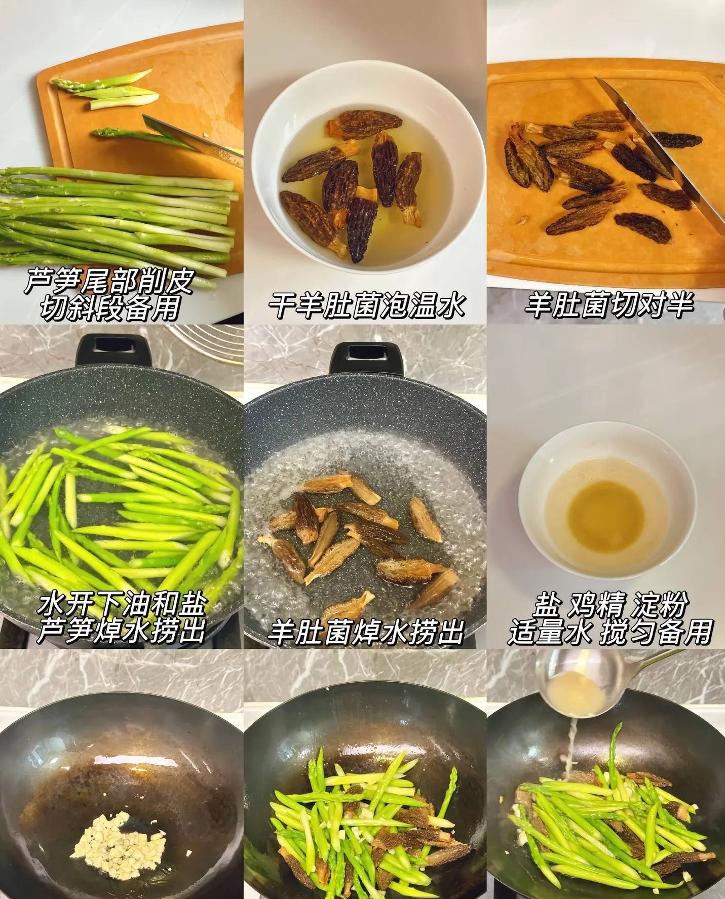 三、羊肚菌炒芦笋:素食界的"胶原卵白"组合 强化对比,制造破损)