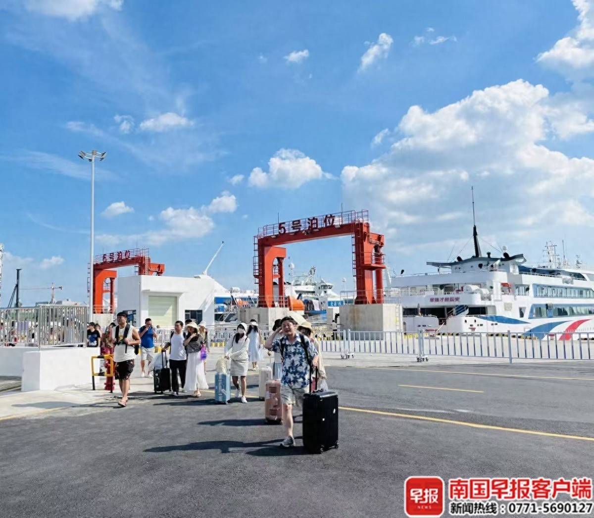 游客乘客轮从涠洲岛复返北海市区。