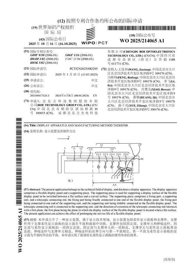 证券之星音信,说明企查查数据涌现京东方A(000725)公布了一项海外专利苦求,专利名为“涌现安设偏捏制作治安”,专利苦求号为PCT/CN2025/082295,海外公布日为2025年10月16日。